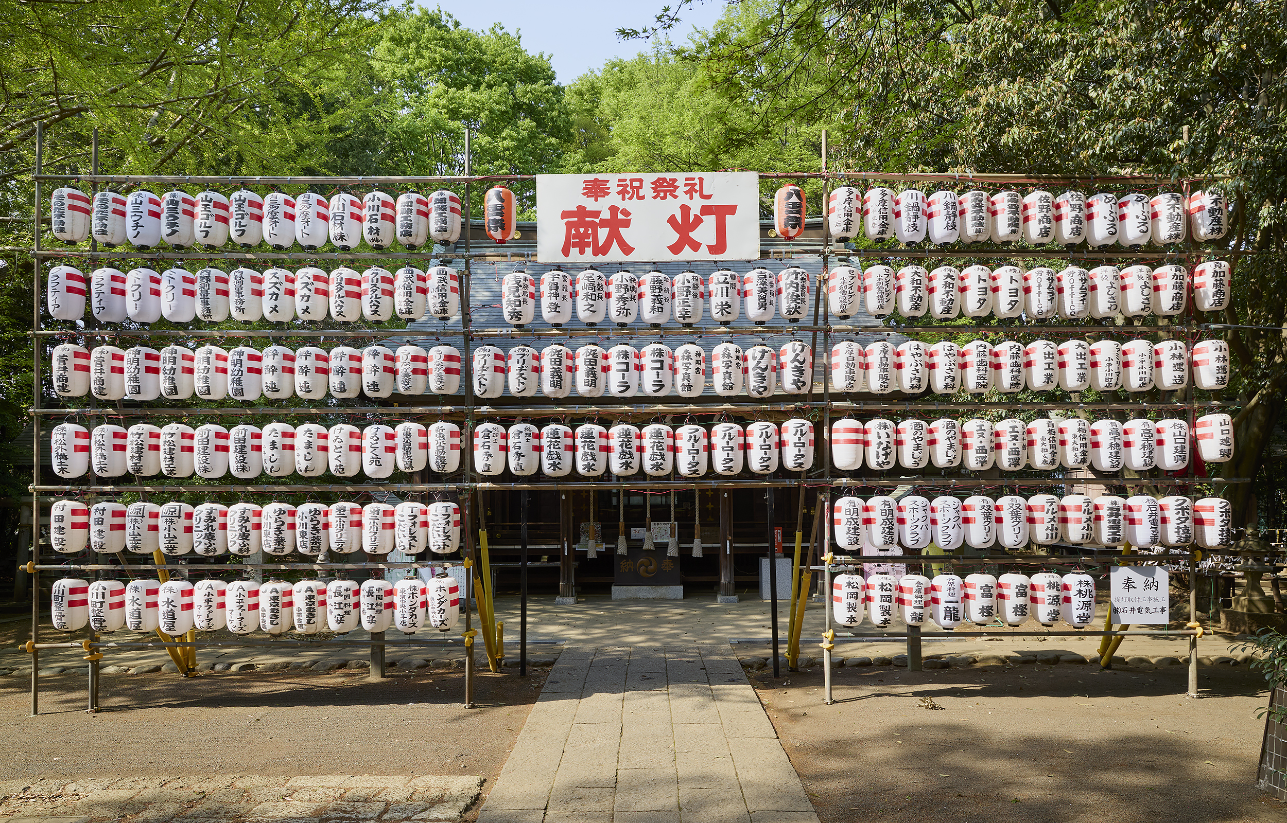 ①大型提灯:神社境内2灯と青梅街道沿い2灯(計4灯が基本)